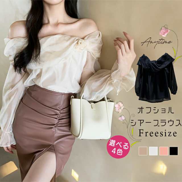 4色 シアーオフショルブラウス ブラウス シャツ レディース チュール ボリューム袖トップス 肩出し オフショル 肌見せ デコルテ オーガンジー 高見え エレガント 大人可愛いレディース 着やせ おしゃれ きれいめ 韓国 20代 春秋【Anytime】
