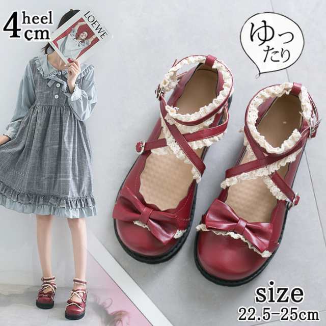 クロスストラップ 厚底パンプス 靴 レディース プラットフォーム ロリータ リボン レース パール 痛くない 脱げない お嬢様 ガーリー 可愛い 歩きやすい 小さいサイズ ブラック