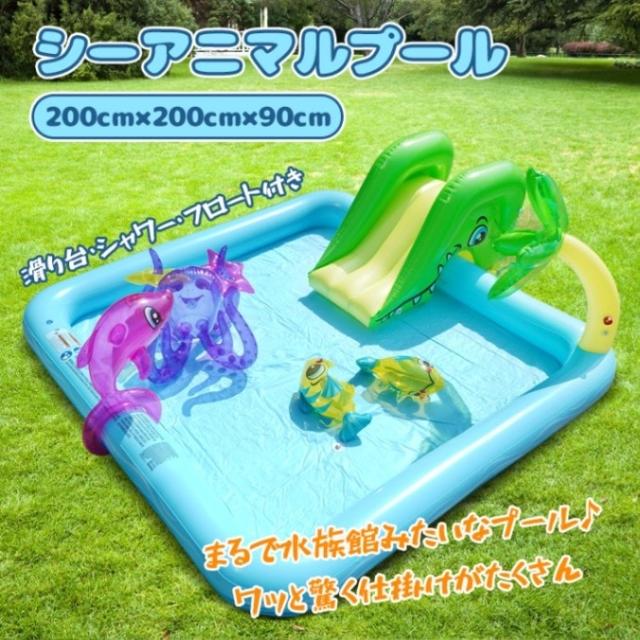 プール 家庭用 エアープール シーアニマル 水遊び 滑り台 排水栓付き 破れにくい 小型フロート付き 子ども用 夏休み アウトドア 室内