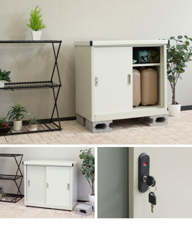 物置 Ave スモール 存在感 幅80.5cm コンパクトサイズ 収容力 収納力 可動棚板 高さ調整可能 20段階 スライド扉 鍵付き 盗難防止 水穴付き 転倒防止設計 錆びにくい ガルバナイズド加工(代引不