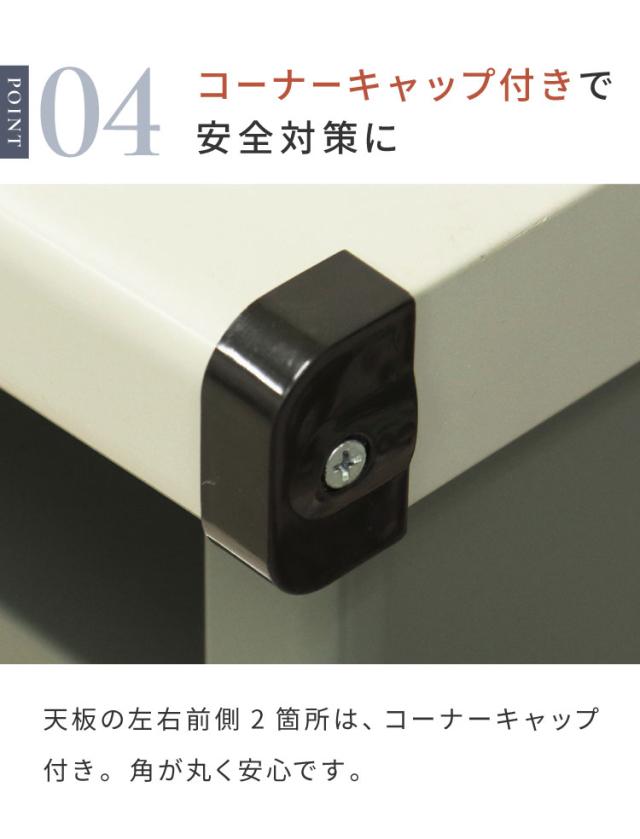 天板の左右の前側2箇所には、コーナーキャップが付いており、安全面に配慮されております。