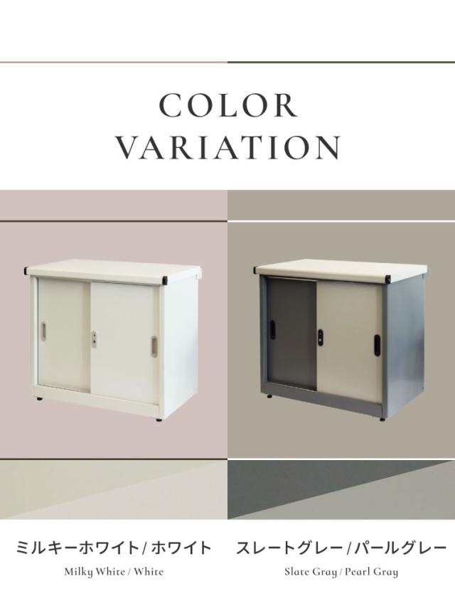 ツートンカラーで仕上げており、存在感のあるデザインの物置になります。