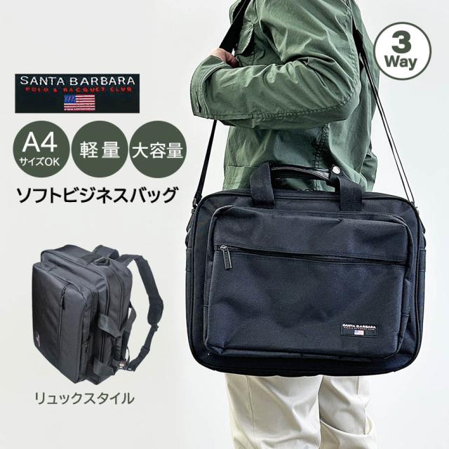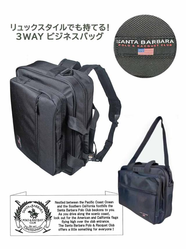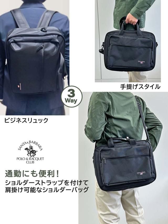 ビジネスバッグ メンズ リュック ショルダー 3way ブリーフケース 軽量 pl-036 SANTA BARBARA POLO &RACQET CLUB サンタバーバラポロクラブ 横型 手提げ ビジネスリュック ビジネスショルダー A4 ブラック 黒 クロ 40代 50代 肩掛け 軽量 自転車 通勤 出張 旅行 就活