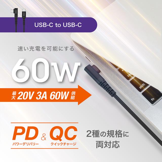 | USB TYPE-C TO USB TYPE-CケーブルはPD/QC急速充電対応 |