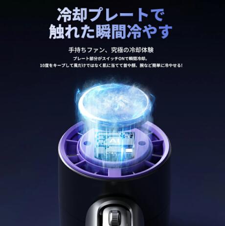 瞬間冷感 冷感扇風機 携帯扇風機 ミニ扇風機 冷却プレート付 無極調速 強風 ポータブル扇風機 手持ち扇風機 ハンズフリー 熱中症対策 ハンディファン 半導体 ハンディ扇風機 USB充電式 100段階風量 小型 超軽量 静音 涼しい 冷感 強力 夏 猛暑 コンパクト