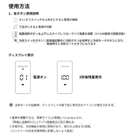 ■風量100段階+冷却モード。ボタン一つで簡単に操作できます。