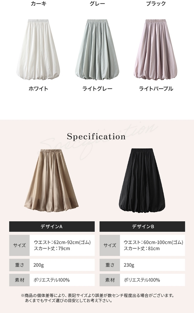 送料無料 選べる2タイプ シンプルなバルーンスカート