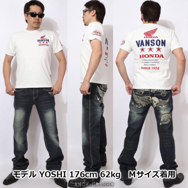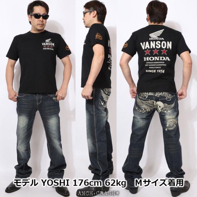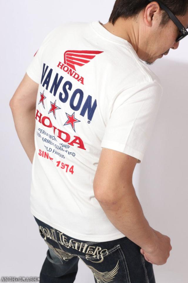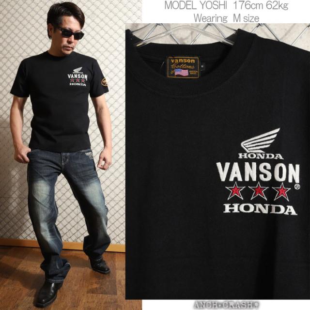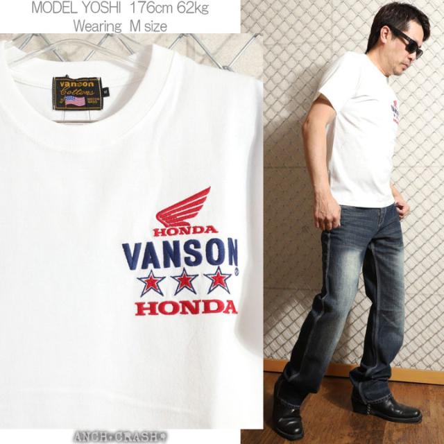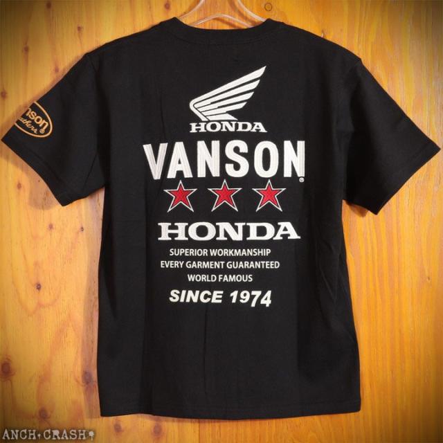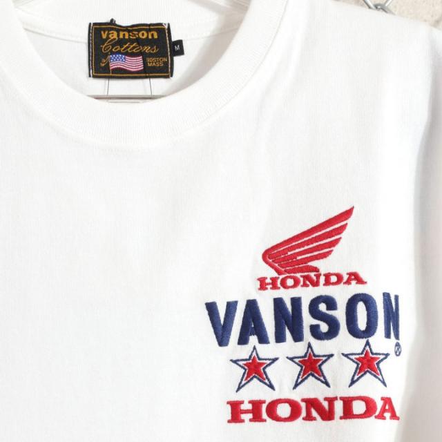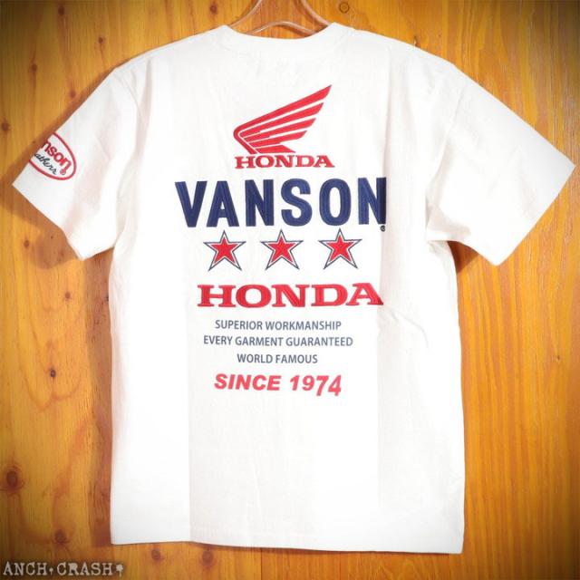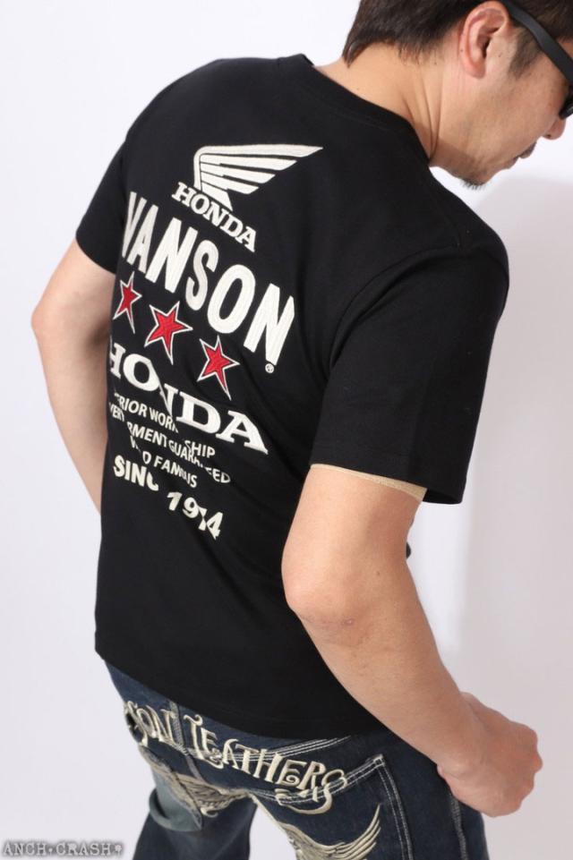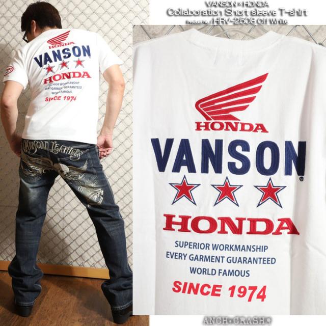 VANSON HONDA 半袖TEE (HRV-2508) 【送料無料】バンソン ホンダ 半袖Tシャツ 刺繍 ワッペン