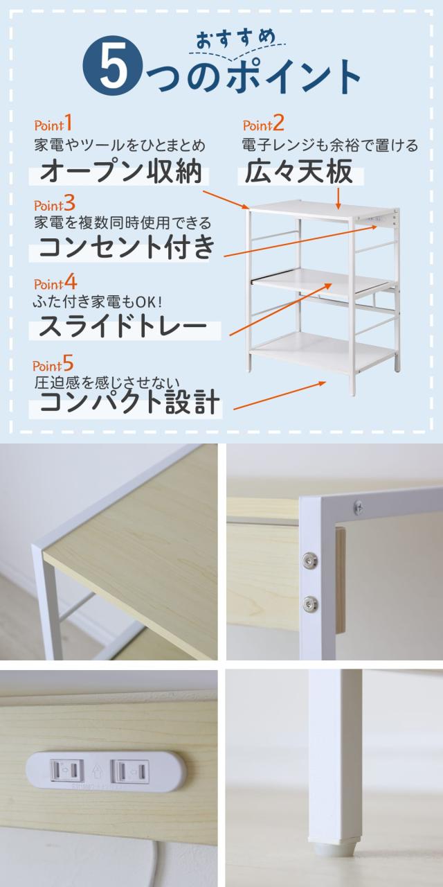 キッチンラック レンジラック キッチン収納 収納 ロータイプ スライド板 コンセント付き インテリア家具 おすすめ おしゃれ 北欧 big_ki プレゼント tm