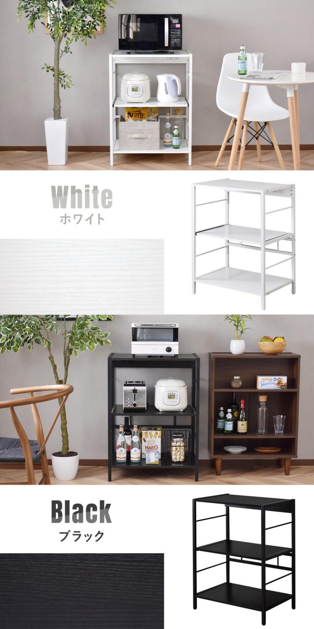 56cm×40cmの広さがあるフラットな天板なので、大型の電子レンジも余裕で置けます。作業台としても使えるので、料理本を広げたり、料理の下ごしらえや盛り付けスペースとして活用したりと使い勝手は抜群です。料理中に一時的に鍋や食器を置いたり、料理本やスマホレシピを広げたりと、マルチに活躍。限られたスペースでも作業効率を高める天板は、キッチン収納としてだけでなく、作業台としての利便性も兼ね備えています。リビングに置けば、ディスプレイ棚に。いろんな使い方ができるマルチなレンジラックです。