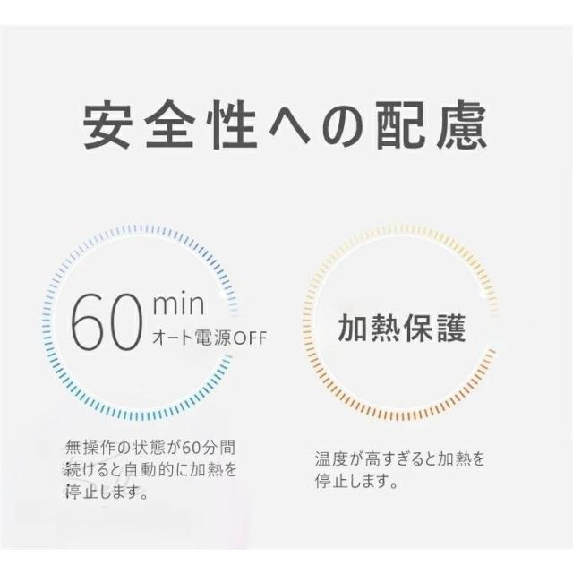 6.オート電源OFFと加熱保護が設けられます。無操作の状態が60分間続けると自動的に加熱を停止します。