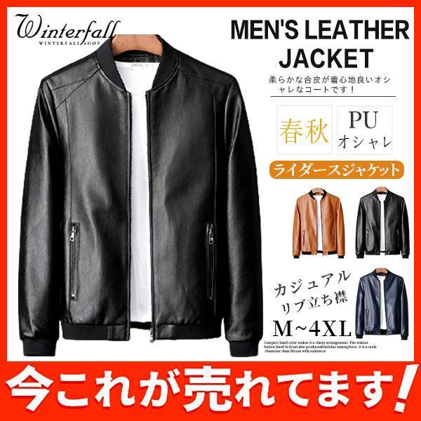 ジャケット ライダースジャケット メンズ 上着 アウター カジュアル バイク 春服 フェイクレザー PU 防風 リブ立ち襟 ファスナー