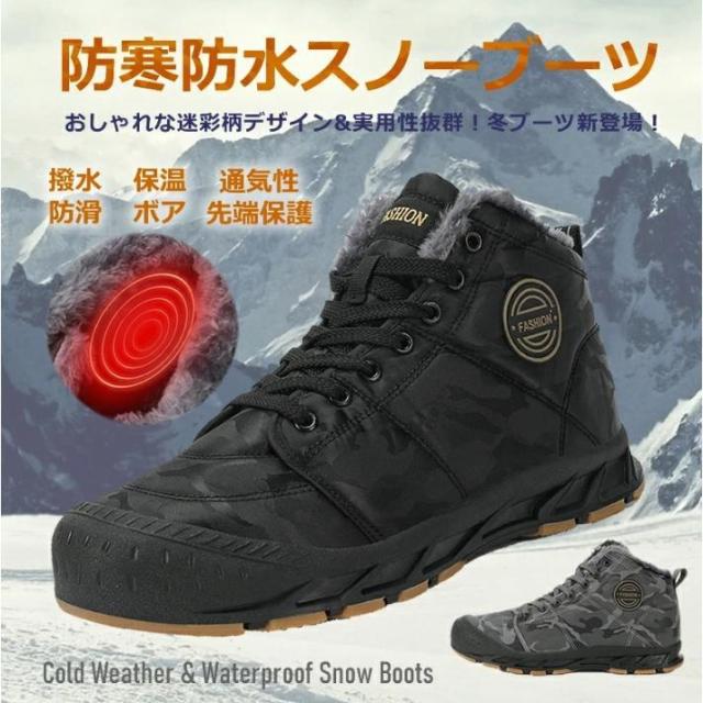 スノーブーツ メンズ 防水 防滑 滑らない スノーシューズ 大きいサイズ ブラック 超軽量 滑り止 雪靴 綿靴 冬用 防寒 保暖 ウィンターブーツ