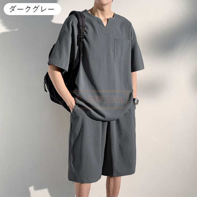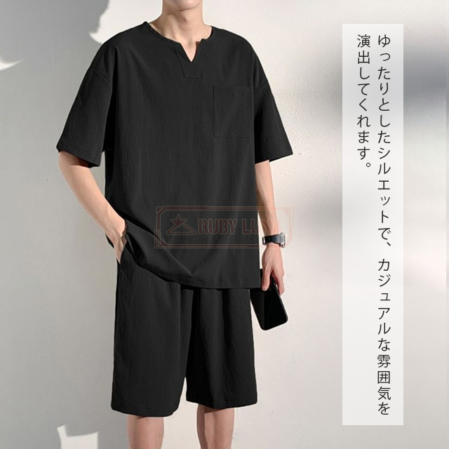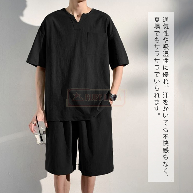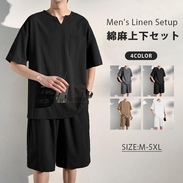 最安挑戦 冬新作 送料無料 新作 セットアップ メンズ 綿麻上下セット リネン ジャージ 春夏 薄手 涼しい 無地 シンプル ゆったり 半袖Tシャツ ハーフパンツ 2点セット カジュアル サマー服 スポーツ 運動着 ルームウェア 部屋着 普段着