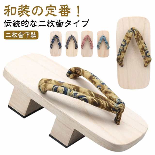 | 和装の定番!伝統的な二枚歯タイプ 一足もっていると便利な二枚歯の下駄は、本格的な木素材で足元からコーディネートを格上げ! 高さがあるので脚長効果も期待できます。 裏面はゴム底になっていて、滑らないので安心ですし、地面への当たりもやわらかくなり、歩いていても疲れが 少ないようにと作られています。 浴衣、作務衣、甚平等の和装におすすめです! お洒落は足元から!大きなサイズをお探しの方に! | |