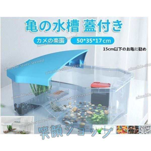亀の水槽蓋付き両生類カメの楽園飼育ケースボックス日向ぼっこ台観察排水孔爬虫類カメ生息地大空間亀の楽園観察排水孔愛い階段エサ皿