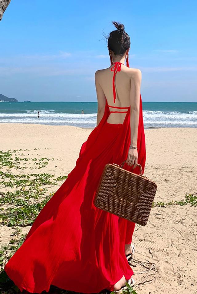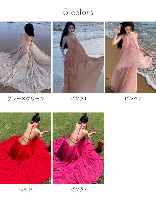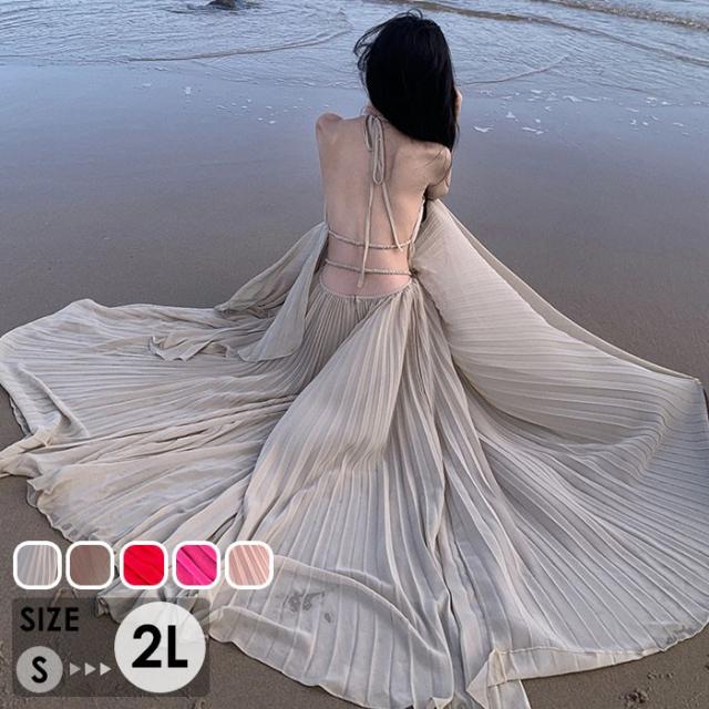 ワンピース レディース リゾートワンピース マキシワンピース ロングワンピース バックオープン ホルターネック 肩出し 背中開き セクシー きれいめ 大人 可愛い 春 夏 マキシ丈 リゾート ロング丈 海 ハワイ ハワイアン 沖縄 結婚式 海外旅行 赤 レッド ピンク