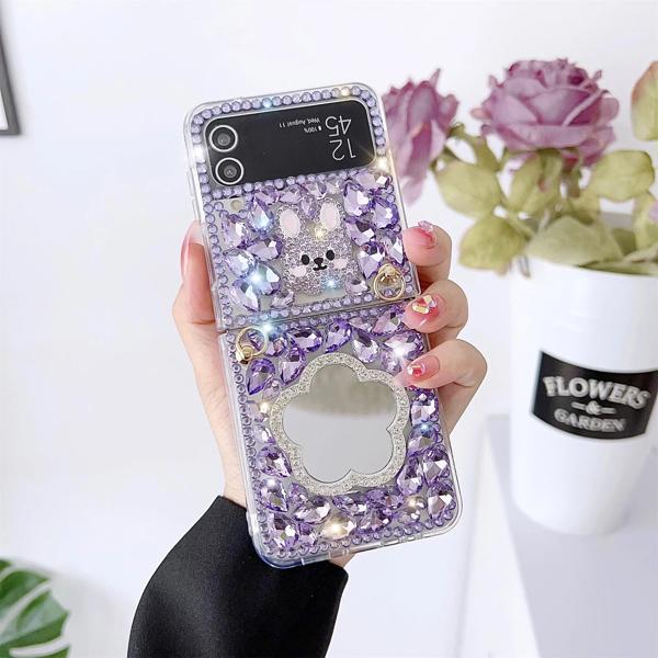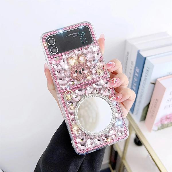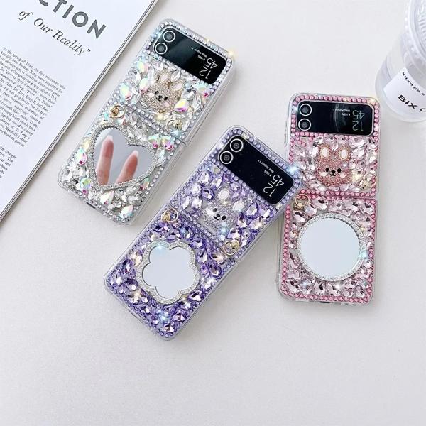 サムスンギャラクシーZフリップ用クリスタルケースカバー,ダイヤモンドラビットバニー,ミラーキラキラ,ラグジュアリー,韓国ファッション,6,3,4,2,1,5