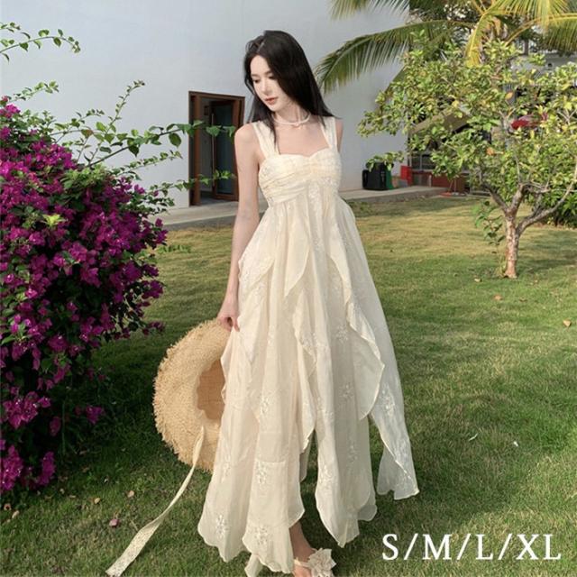 リゾートワンピース キャミソール 沖縄 大人 白 可愛い 夏 ロングワンピース ハワイ リゾートワンピ 白ワンピース ハワイアン 沖縄 体型カバー 結婚式 七五三 成人式 卒業式 入学式 Aライン 春夏おうち マキシ丈 無地 おしゃれ 韓国 光沢 ドレープS M L XL