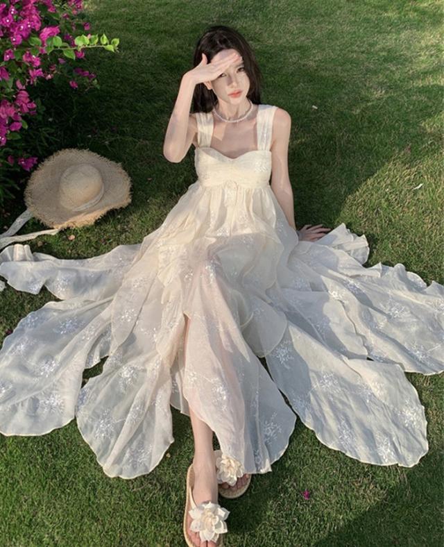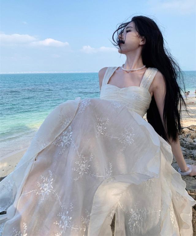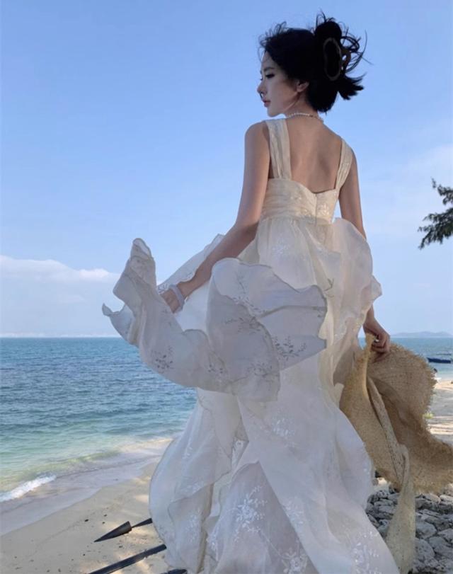 リゾートワンピース キャミソール 沖縄 大人 白 可愛い 夏 ロングワンピース ハワイ リゾートワンピ 白ワンピース ハワイアン 沖縄 体型カバー 結婚式 七五三 成人式 卒業式 入学式 Aライン 春夏おうち マキシ丈 無地 おしゃれ 韓国 光沢 ドレープS M L XL be227zbzbm5