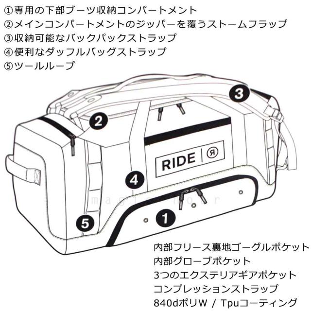 スノーボード スキー バックパック ブーツケース 2WAY ダッフル バック 登山 アウトドア 大容量 リュック ライド RIDE 80L バッグ メンズ レディース お洒落 黒
