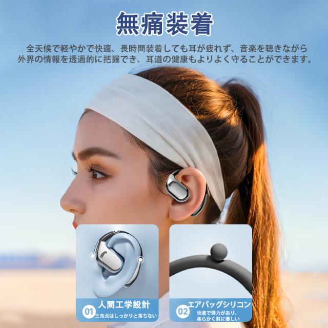 骨を振動させることで音を聴かせる「骨伝導ヘッドホン」。耳を塞がないため、オープンイヤーのデザインで、開放感が満喫できます、長時間使っても、耳には不快感が当たらない。