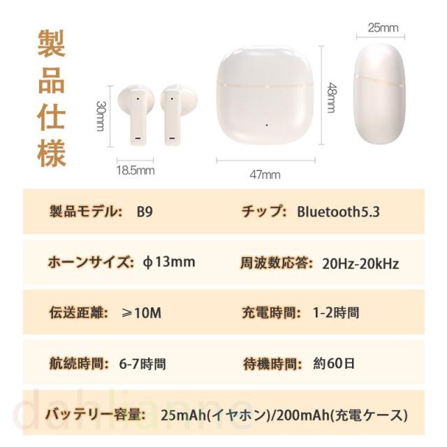 【1ステップで簡単接続、初心者にも簡単操作】 両耳イアホンをケースから取り出して、端末のBluetooth設定画面で「b9」をクリックするだけでペアリング完了!一度接続すれば次回以降はイヤホンを取り出す瞬間に自動接続し、初心者にも簡単に使える完全ワイヤレスイヤホン!ケーブルレスなので動きが制限されないという特性上、イヤホン・ヘッドホン本体側面の物理ボタンは内蔵するリモコンになって、クリックするだけで音楽再生、ボリュームコントロール、曲送り/曲戻し、電話応答やSiriなど、多彩な操作がスマートに行えます。トレーニング、ドライブ、ウォーキングなど日常の様々なシーンで快適に楽しめます。(仕事、通勤・通学、DVD鑑賞、電話会議など)。