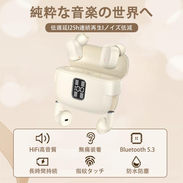 【Hi-Fi高音質&Bluetooth 5.3】進化したクリアでパワフルなサウンドを実現し、ステレオ音楽に楽しめます。低音から高音までバランス良く出ていて、最先端Bluetooth 5.3が搭載されたワイヤレスイヤホンで、信号が強くなり、10m長めの伝送距離iosとandroidに対応可能。さらに、データ伝送速度が速くなったことにより、遅延やノイズが減ります。