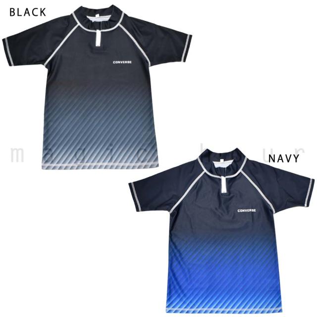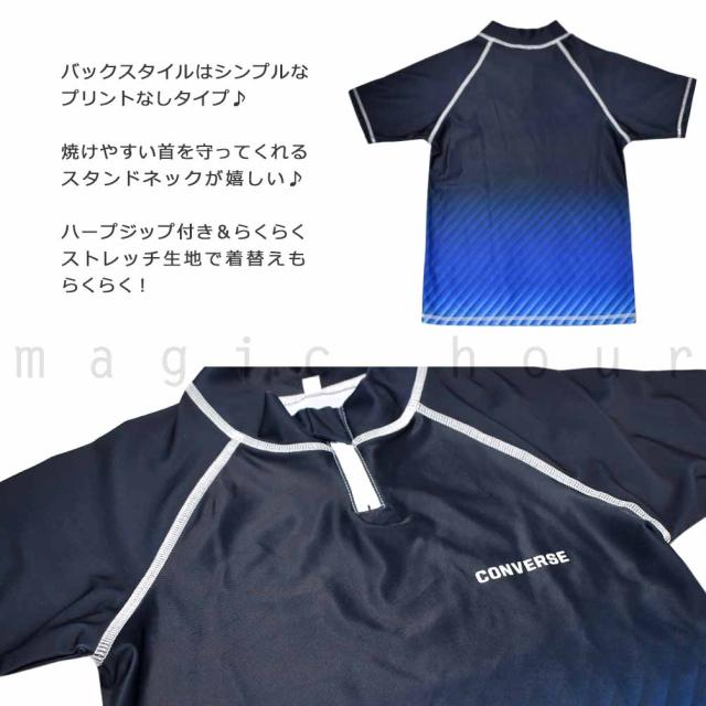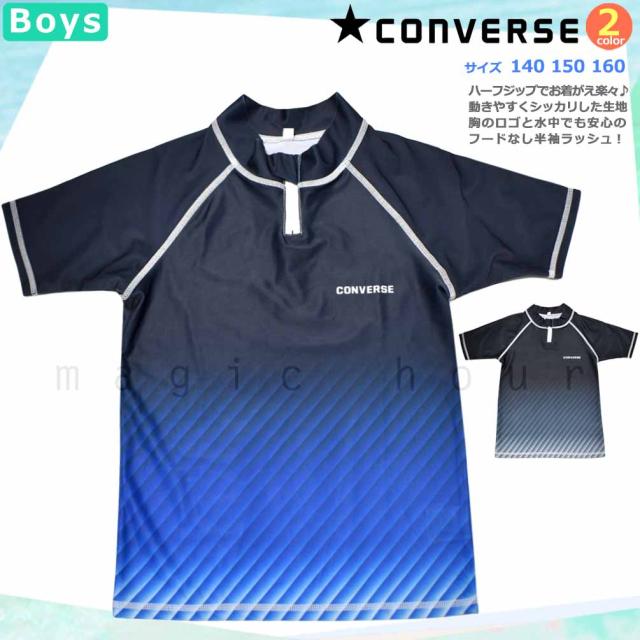 ◆ ラッシュガード キッズ ジュニア ボーイズ 半袖 CONVERSE コンバース UVカット ハーフジップ 速乾 ストレッチ ラッシュ 学校 スクール アウトドア UPF50+ ◆
