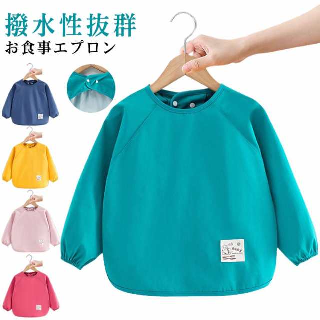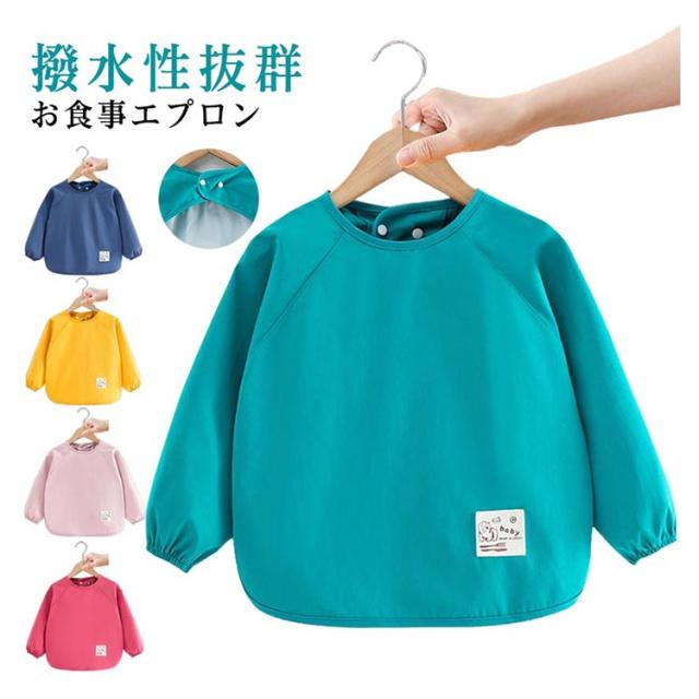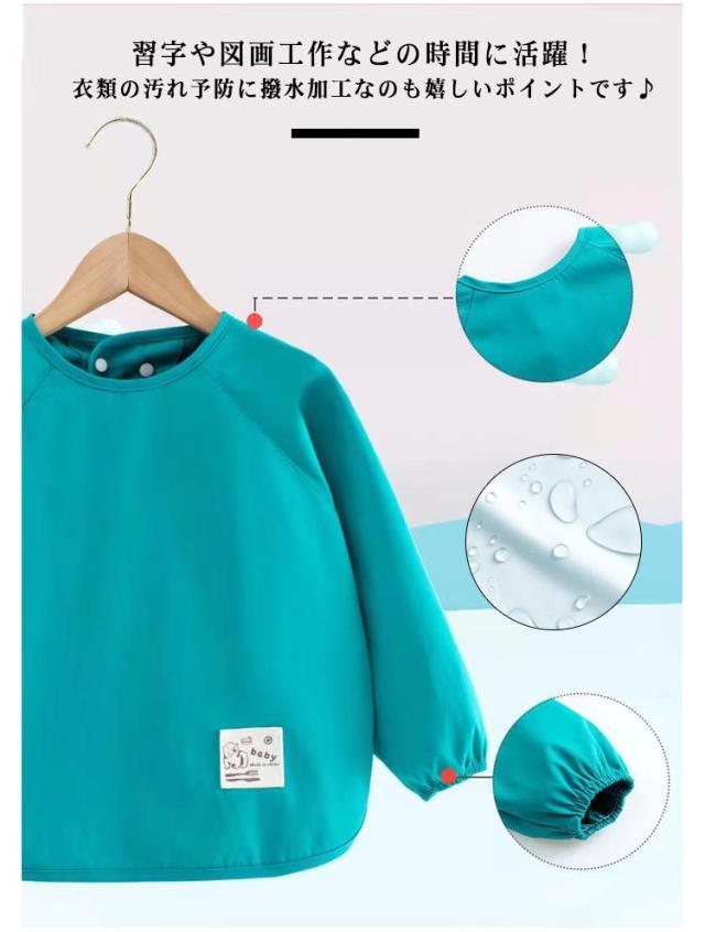 お食事エプロン 長袖 保育園 防水 離乳食エプロン お食事エプロン ロング 幼稚園 離乳食 女の子 スモック 男の子 赤ちゃん 長袖スモック 子供服 キッズ 子ども 食べこぼし防止 ロングタイプ ベビーエプロン プルオーバー お絵描き 90 100 110