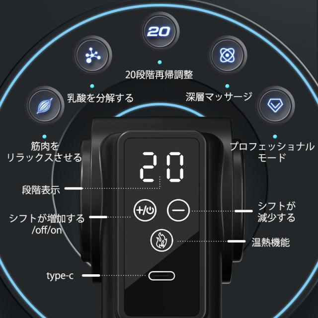 ハンディマッサージャー 液晶付き 肩こり マッサージ器 全身 電動 バイブ アーム 首 肩 腰 背中 20段階調節 父の日 プレゼント 敬老の日 母の日