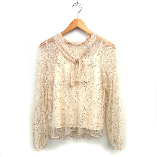 【中古】マーキュリーデュオ MERCURYDUO レース ブラウス ボウタイ 透け感 インナーキャミソール 長袖 F ベージュ