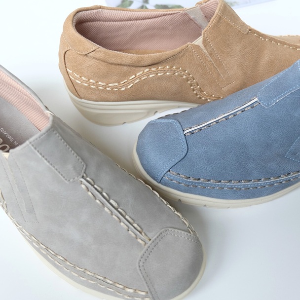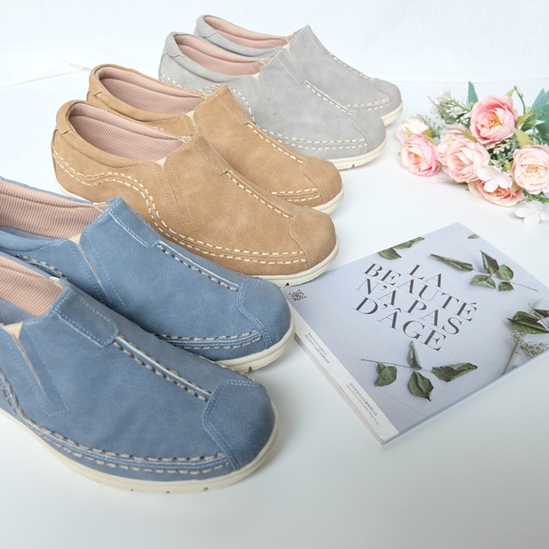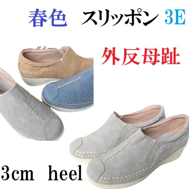 スリッポン 春色 幅広 3e 外反母趾 レディース ステッチ サイドゴア 軽量 紐なし コンフォート カジュアル レデイーズシューズ おしゃれ