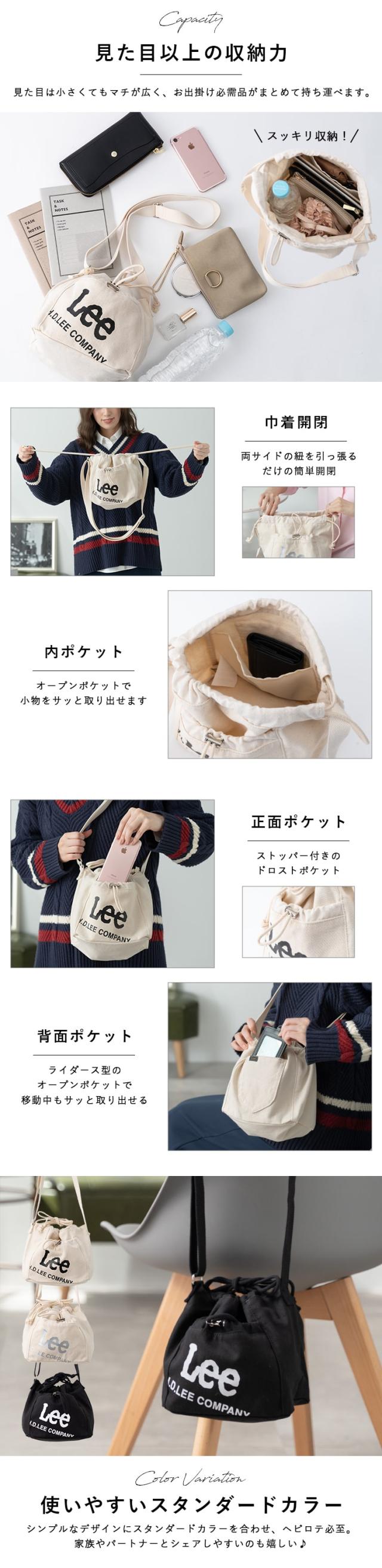 ショルダーバッグ レディース ミニショルダーバッグ ポシェット 斜め掛け ブランド Lee リー 小さめ 巾着 ドロスト キャンバス 布 2way トート 軽量 コンパクト ペットボトル 散歩 サブバッグ プレゼント ギフト