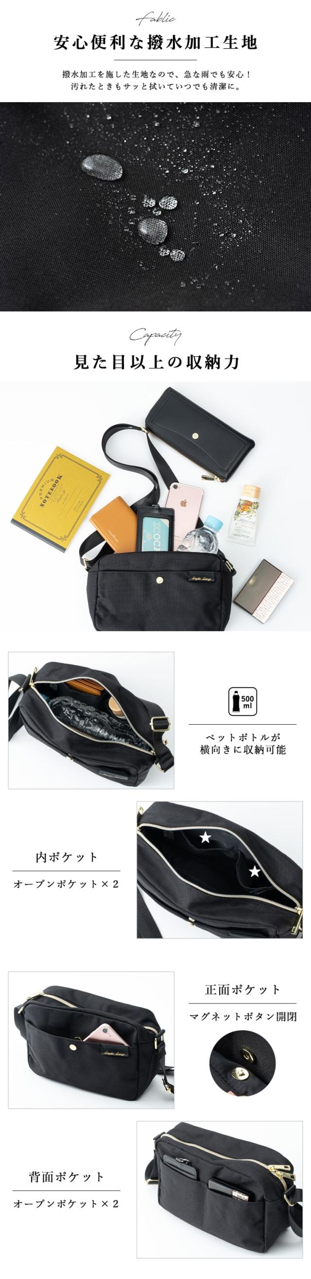ショルダーバッグ レディース 小さめ 斜めがけ 大人 ブランド 撥水 軽量 ミニショルダーバッグ Legato Largo レガートラルゴ ペットボトル ファスナー付き 通勤 通学 旅行 上品 きれいめ プレゼント ギフト