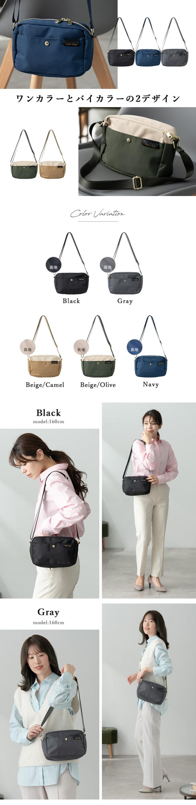ワンカラーとバイカラーの2デザインとツヤ感ショルダーでキレイめコーデにも合わせやすい。