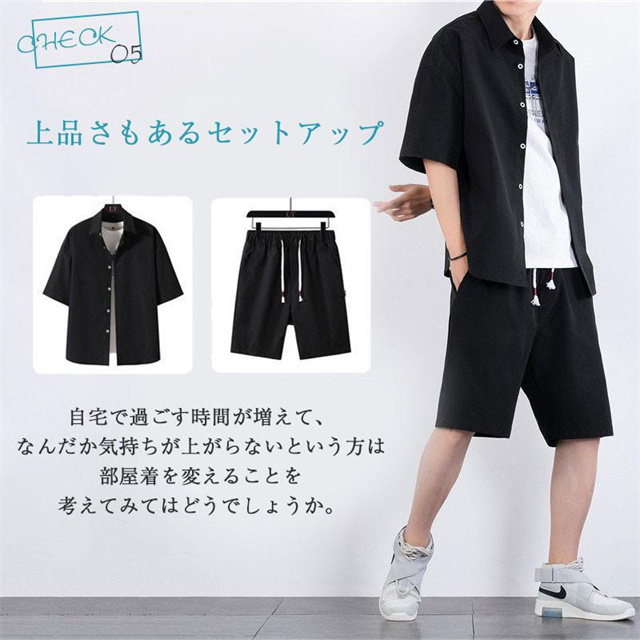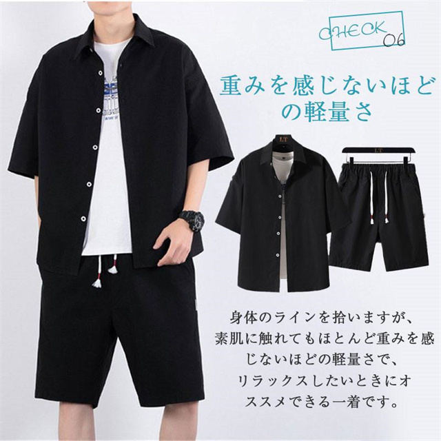 セットアップ メンズ 夏 半袖 薄手 接触冷感 涼しい 上下セット 短パン 旅行 学生 高校生 大学生 シャツ トップス 男性用 ギフト シンプル お洒落 送料無料