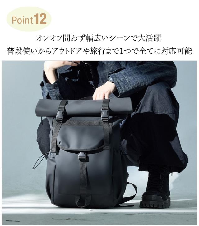 ロールトップ バックパック メンズ リュック 防水 拡張 大容量 最強 バッグ バック 20L 30 40 50 代 おすすめ 機内 軽量 2 3 way おしゃれ PC アウトドア バイク ツーリング 旅行 手持ち デイパック 機能 カバン 大人 仕事 通勤 通学 出張 1 2 泊 リュックサック