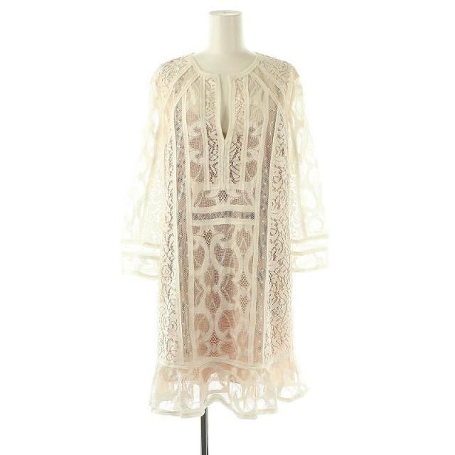 【中古】ビーシービージーマックスアズリア レースロングスリーブワンピース ひざ丈 S ホワイト ベージュ