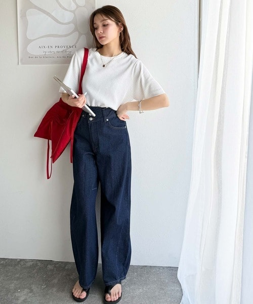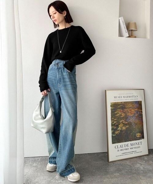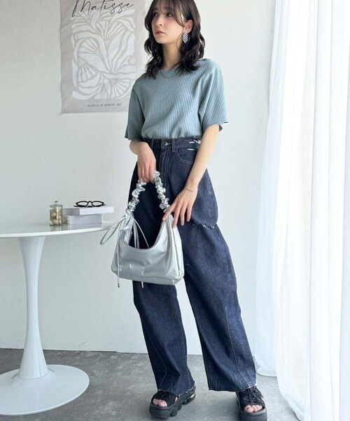 カーブデニムやスウェットパンツなどに合わせたシンプルカジュアルスタイルから