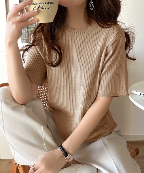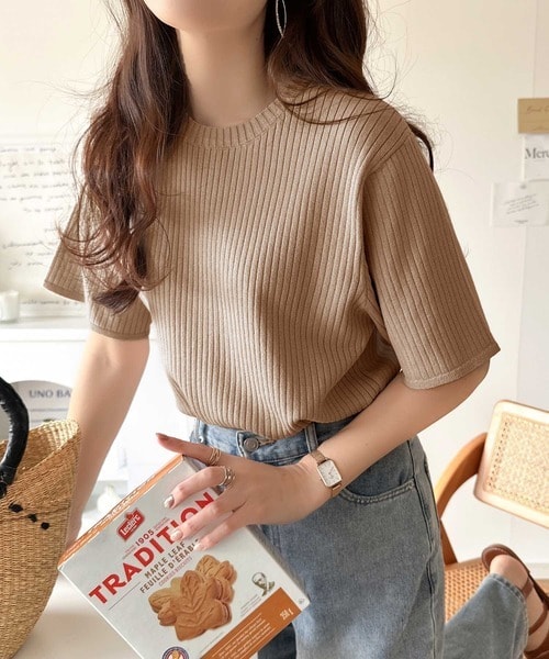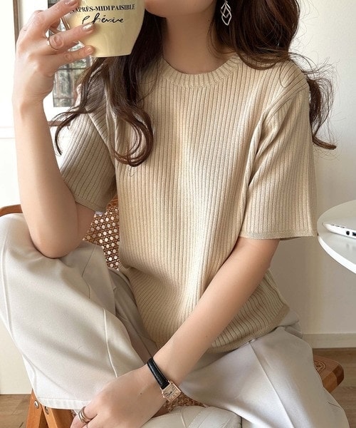 クラシカルエルフ(Classical Elf)/着映えトップス。シンプルサマーリブニット(半袖)