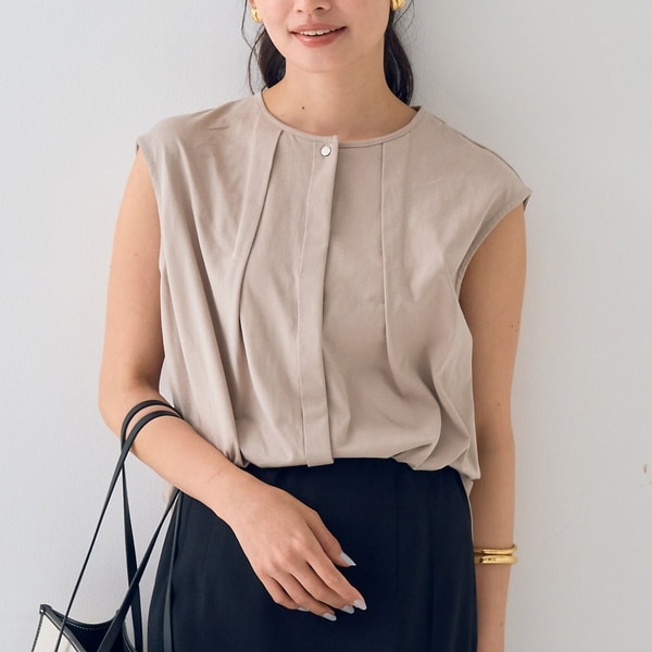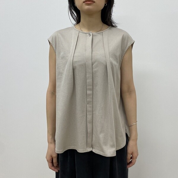 タック入りノースリーブカットソーブラウス