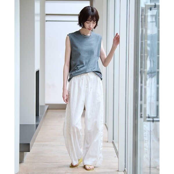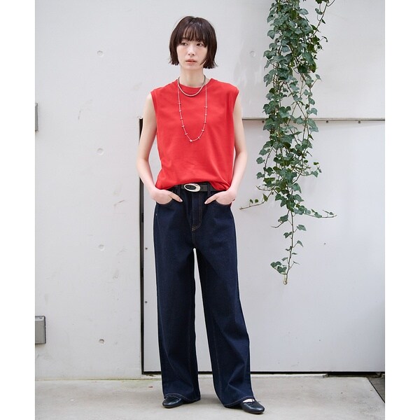 カットソーベストとしてTシャツとのレイヤードも楽しめます。