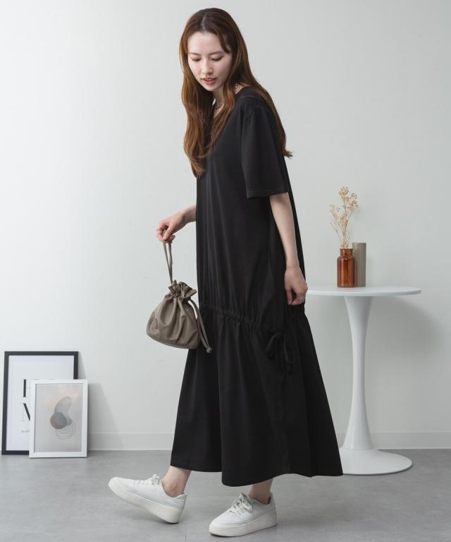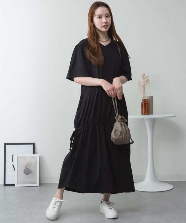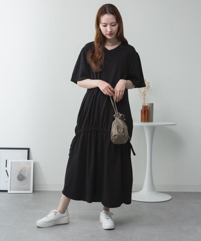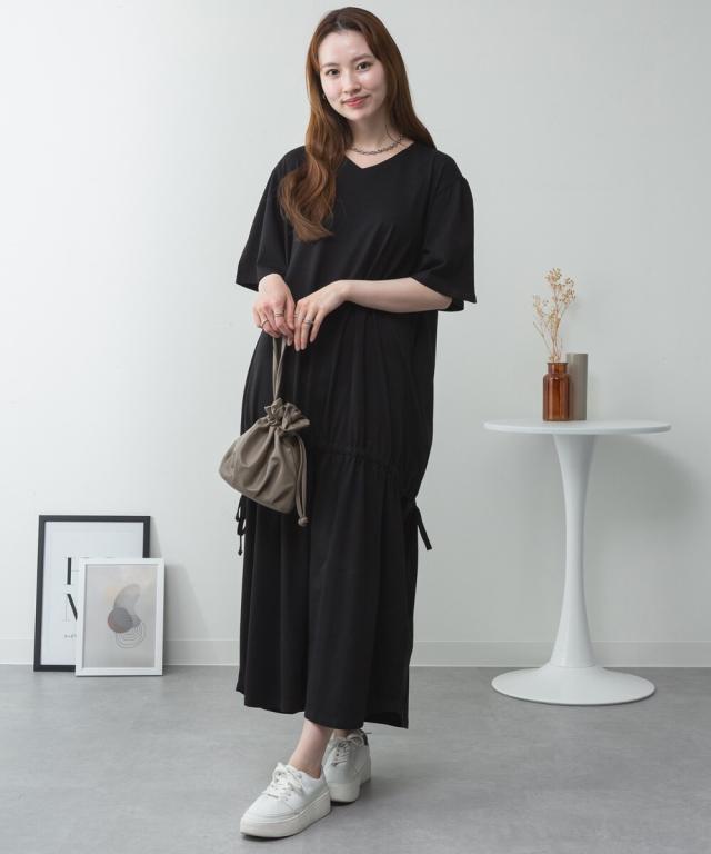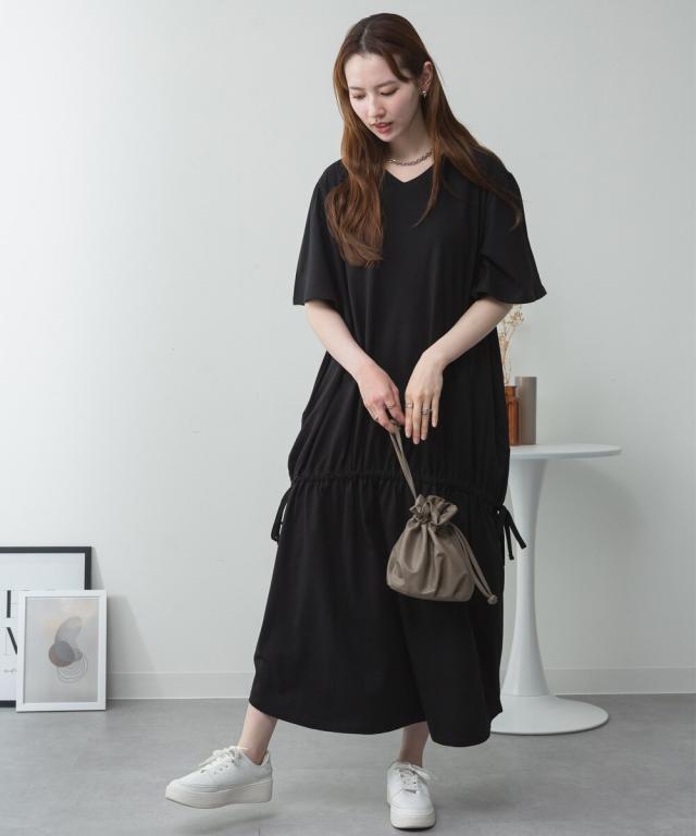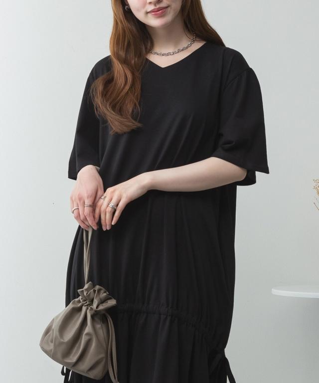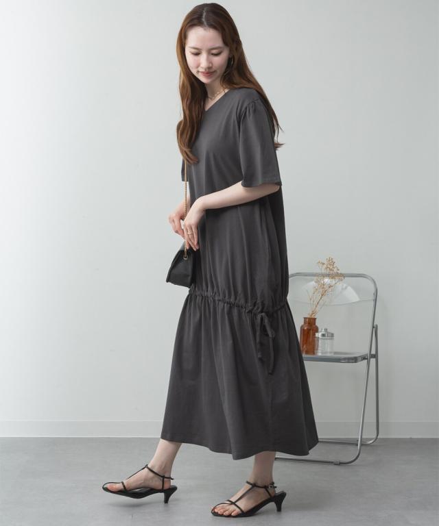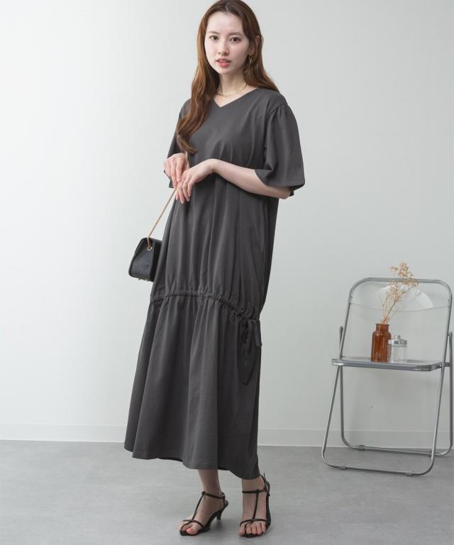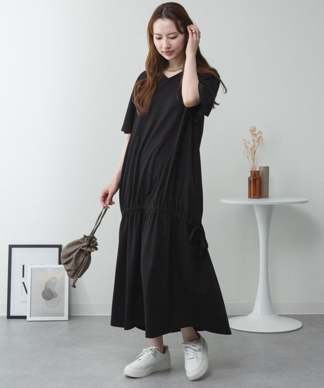 アットワン(atONE)/ドロストシャーリングVネックワンピース