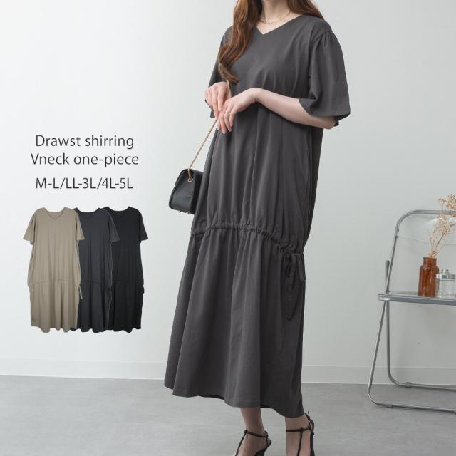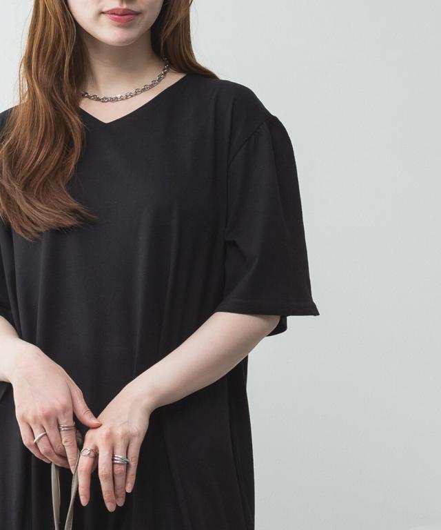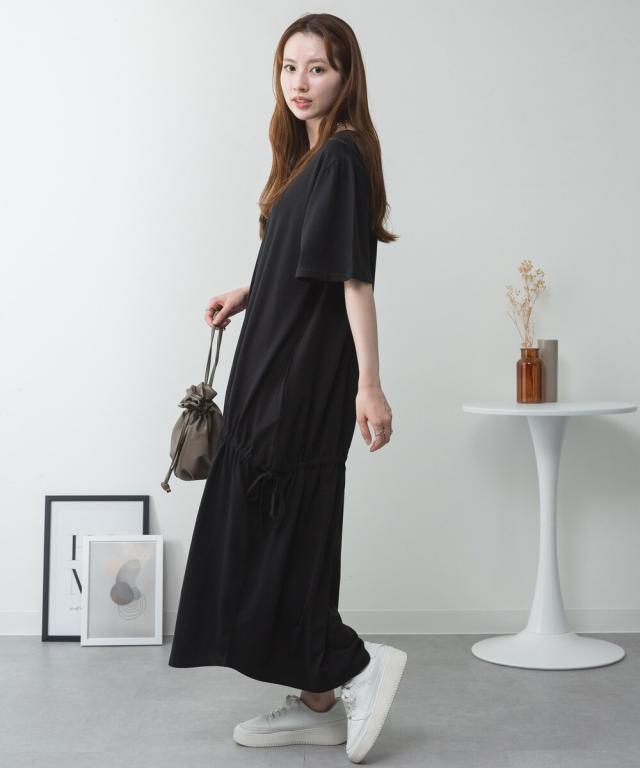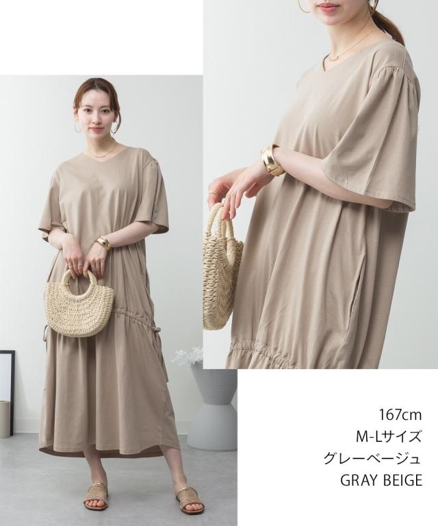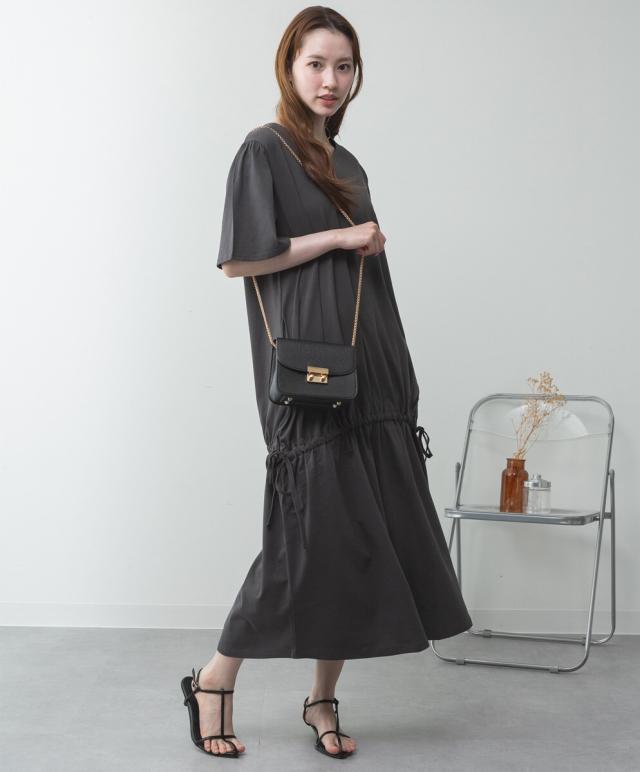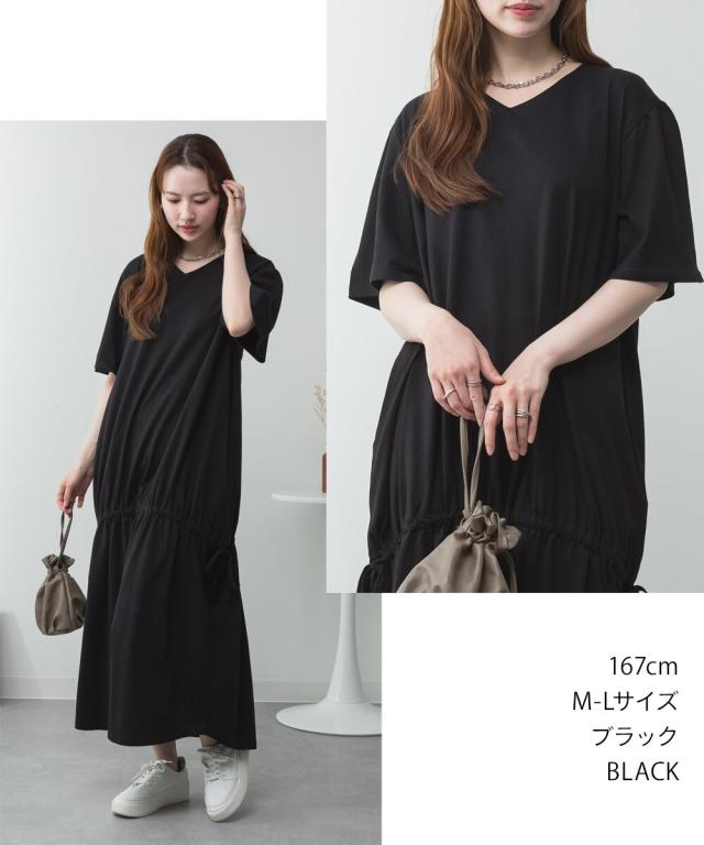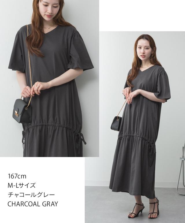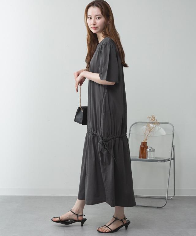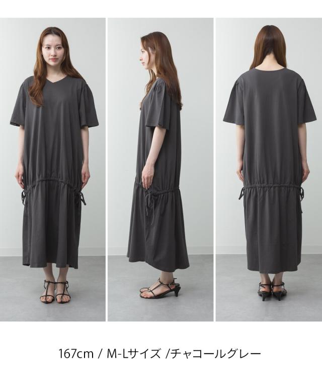 アットワン(atONE)/ドロストシャーリングVネックワンピース