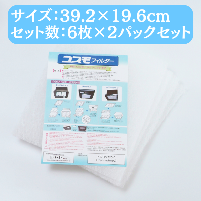 【正規販売代理店】 コスモフィルター 39.2×19.6cm 6枚×2セット(計12枚) 換気扇フィルター 交換用 国産 不燃性 ガラス繊維 レンジフードフィルター カバー