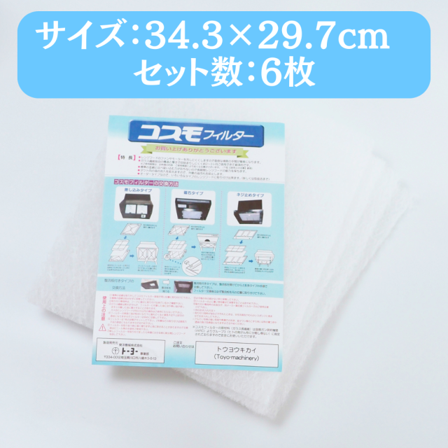 【正規販売代理店】 コスモフィルター 6枚 34.3×29.7cm 換気扇フィルター 交換用 国産 不燃性 高除去率 高通気性 ガラス繊維 レンジフードフィルター カバー