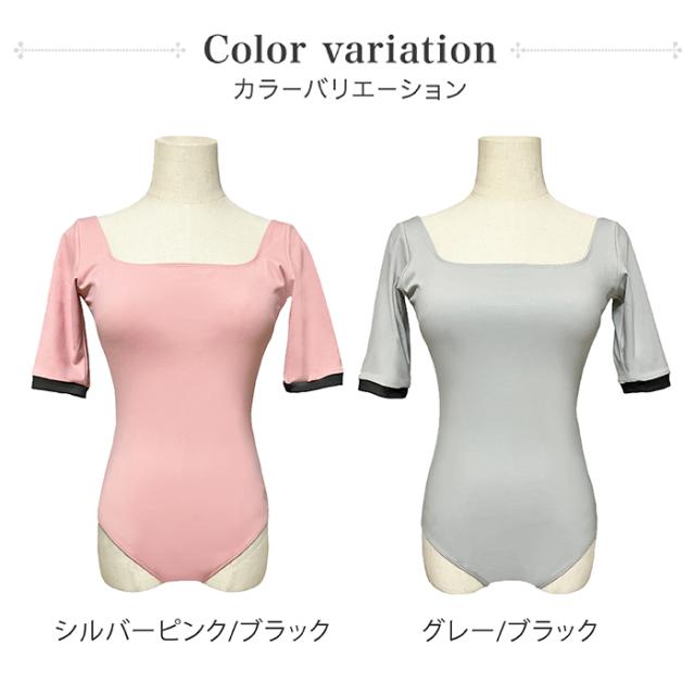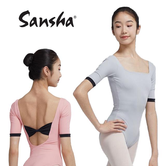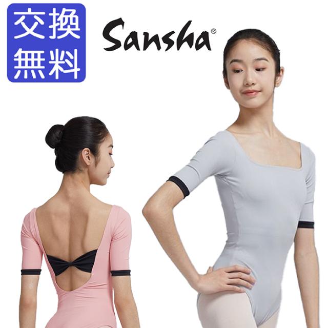バレエ レオタード 【サンシャ】50BD2540P フレジュス 3分袖 レオタード ジュニア・大人 バストポケット付き 半袖 袖あり バック リボン デザイン おしゃれ ストレッチ 伸縮 レッスン 練習 着 グレー ピンク 145 150 155 160 165 170 175