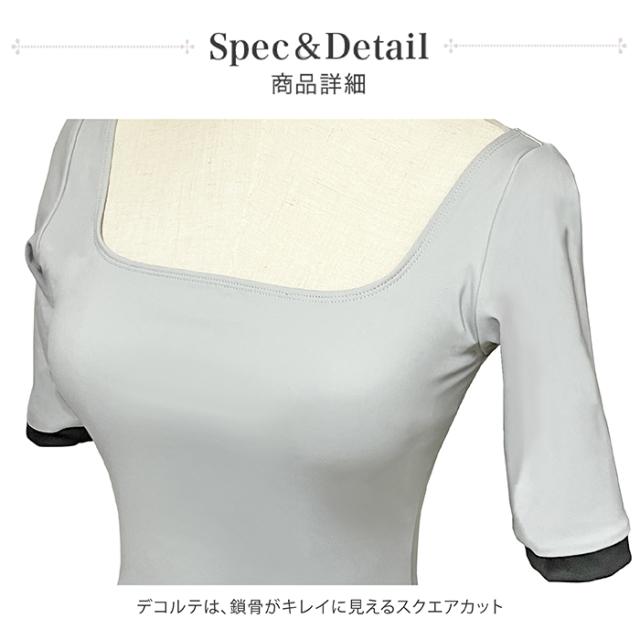 襟ぐりはスクエアカットで、鎖骨がよりキレイに見えます。