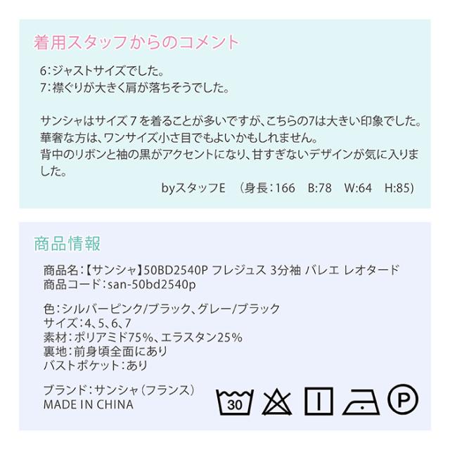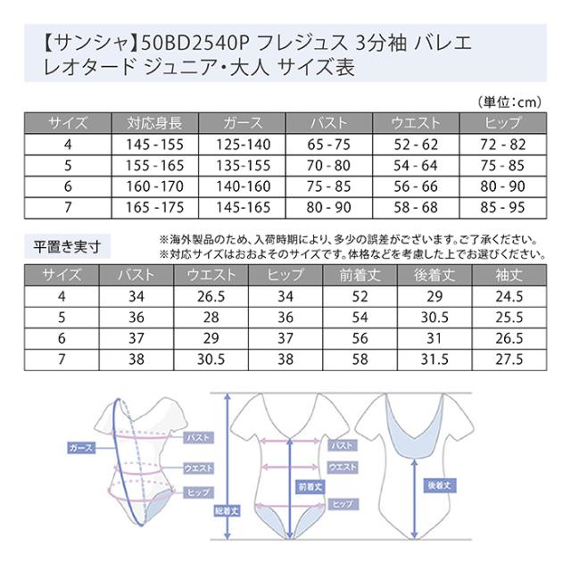 商品名:【サンシャ】50BD2540P フレジュス 3分袖 バレエ レオタード